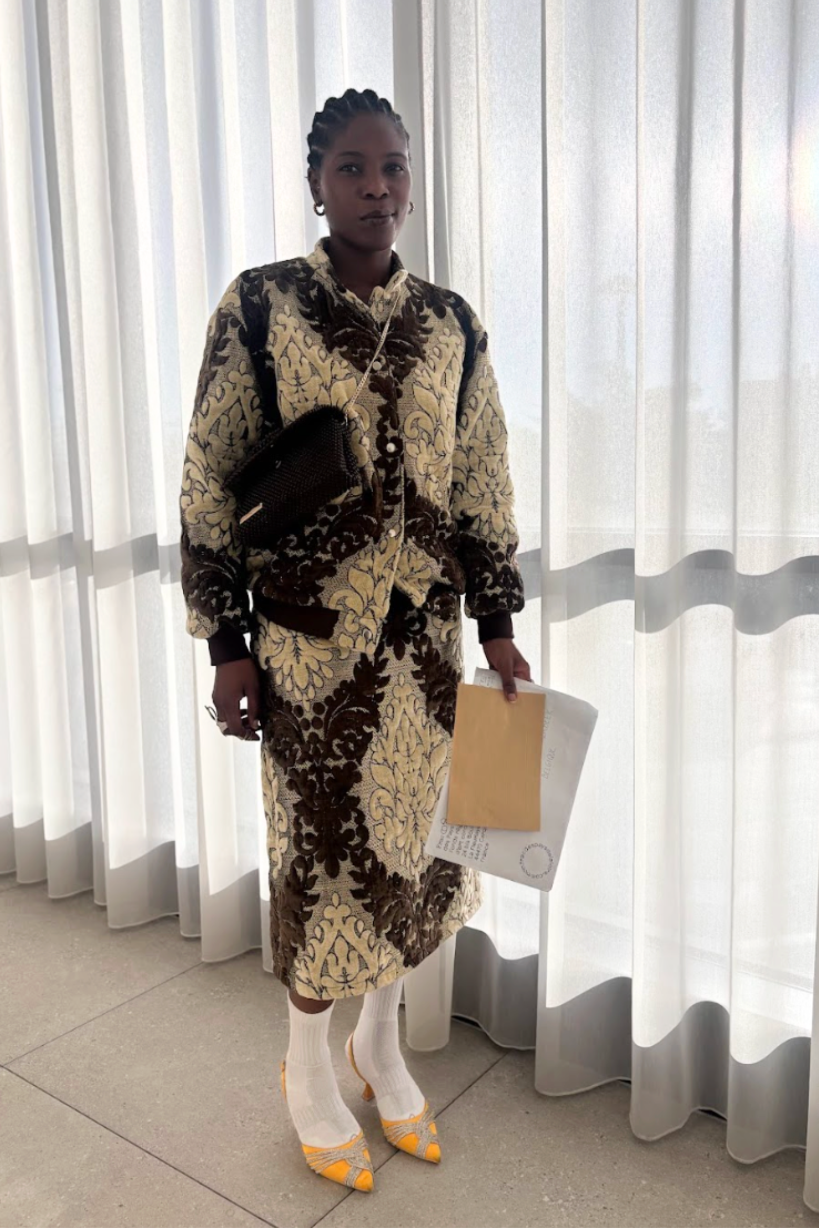 - Fabric: Upcycled jacquard upholstery fabric